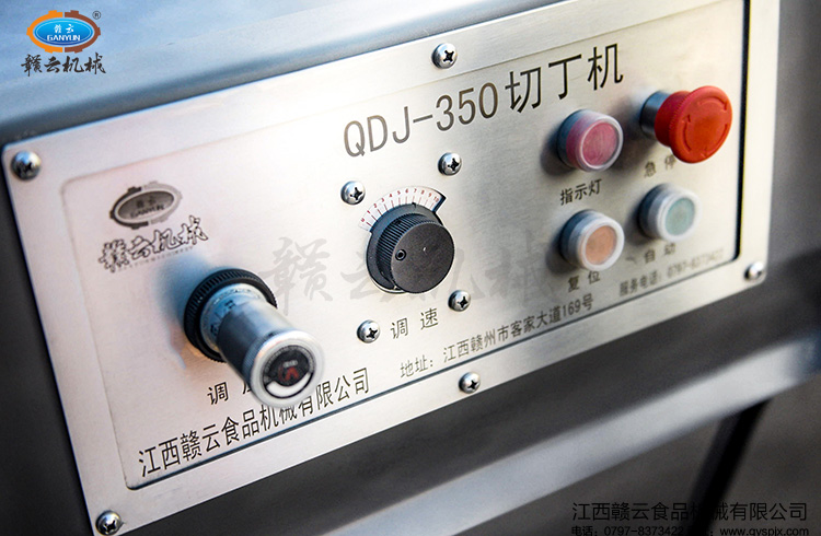 GY-QRJ-350型切肉丁機,整機采用304不銹鋼加厚板材封裝,表面高級噴砂處理,深灰色的外觀盡顯高端。