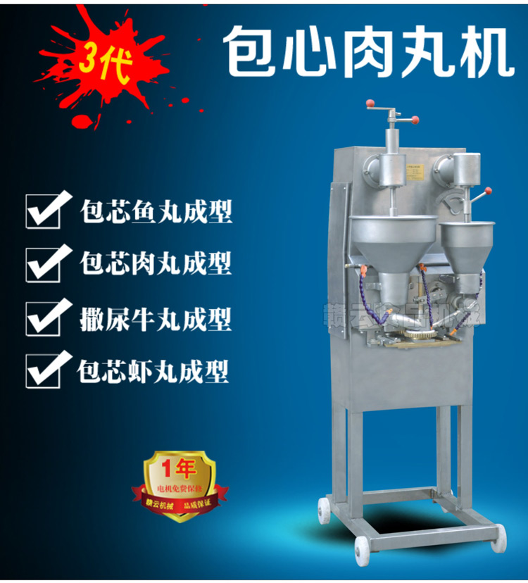 現(xiàn)在肉丸成型機在市場上的需求量也是快速增長的趨勢,而且生產(chǎn)肉丸不僅投資小還利潤高,在食品市場上見效也非常塊,肉丸成型機可以符號市場需求各種原材料都可以加工制作,無論是蔬菜餡、肉類餡的,可以制作各類爽脆,有韌性、有彈性的魚丸,豬肉丸,牛肉丸,雞肉丸等等,包心肉丸機所有這一切都能滿足您的加工使用。丸子機在運轉(zhuǎn)時,丸子直接落入接盤中,減少了人體對制品的接觸,更安全衛(wèi)生�,F(xiàn)已走向全國內(nèi)地省市和海外飲食市場。