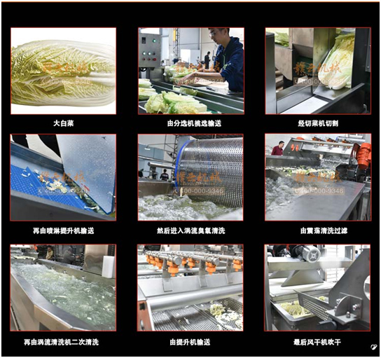 贛云掌握中央廚房凈菜設備核心技術,本套設備由分選輸送設備、數(shù)字多元化切配設備、提升機設備、渦流臭氧清洗去農(nóng)藥殘留設備、高頻振動機、渦流清洗機、風干機等組合而成。