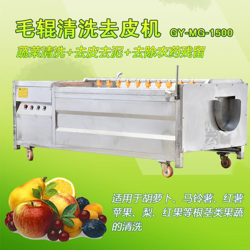 3、毛刷式清洗機:毛刷式清洗方法是通過刷毛與水中物料的直接接觸,使物料表面的污物刷除洗凈,該類清洗方式適用于馬鈴薯、蘿卜等根莖類蔬菜的清洗。
