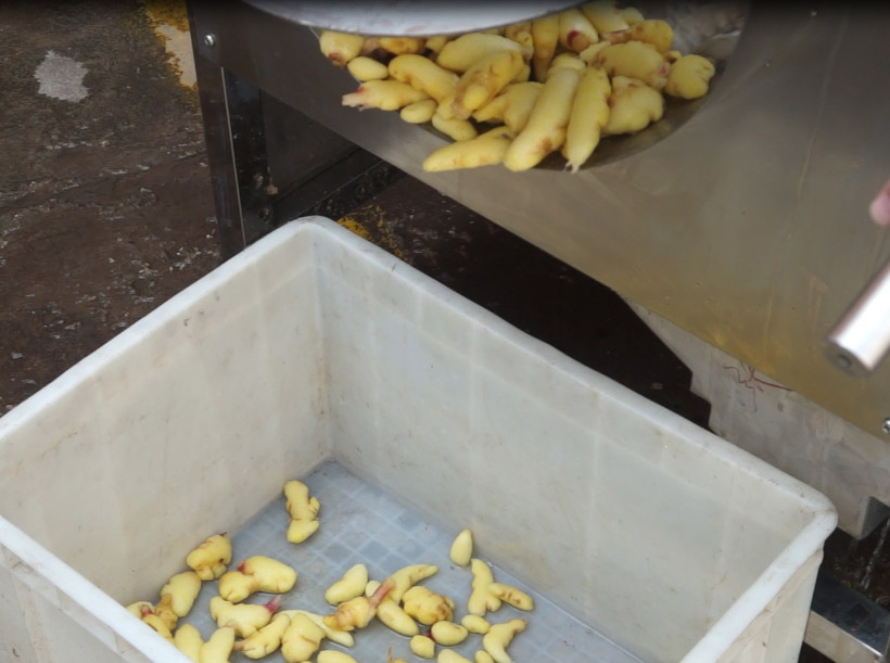 隨著生意的日漸擴(kuò)大,有作坊不再滿足于雇傭工人進(jìn)行腌姜制作,他們通過(guò)引進(jìn)毛輥清洗機(jī)