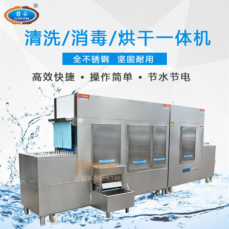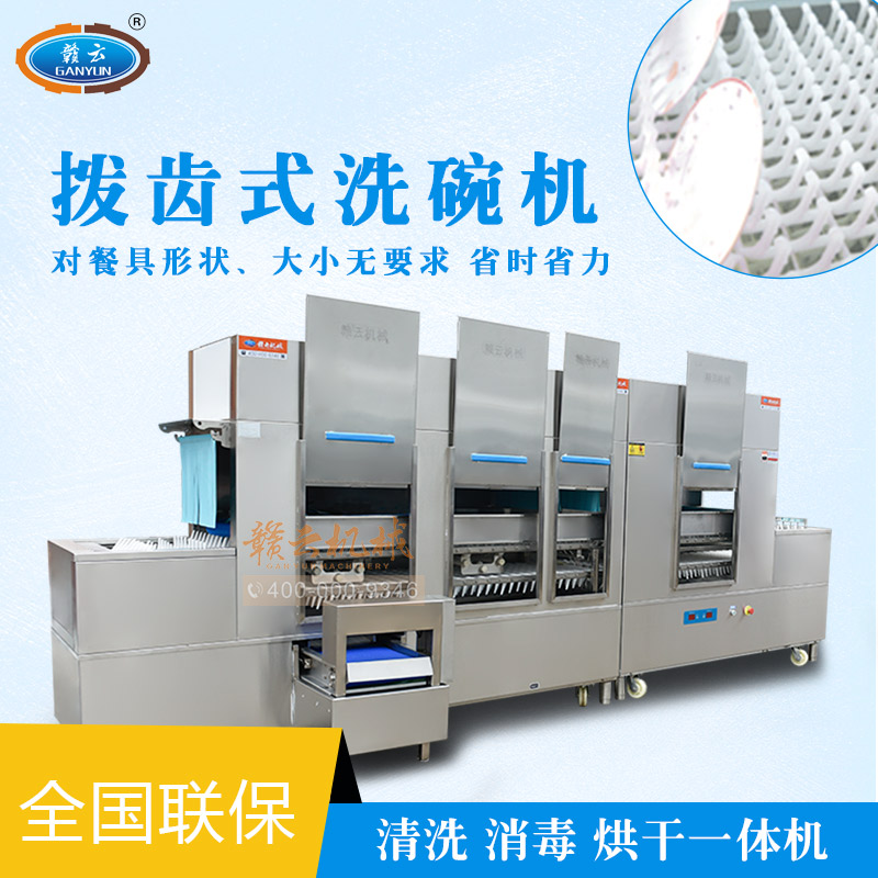 贛云新款長龍式式洗碗機,本系列產(chǎn)品經(jīng)過除渣、初洗、清洗、漂洗、消毒、烘干一體化流水線操作,清洗簡單,撥齒型傳送帶,能更好的固定碗碟,洗滌過程中不易碰撞損壞,采用斜插式傳送,不需裝筐,不必考慮形狀,直接擺放清洗即可;碗碟斜插式進入清洗,清洗無死角。