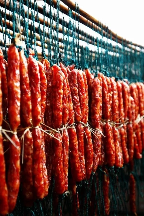 12、晾制:門店要將灌制好的香腸懸掛于通風(fēng)口晾制。