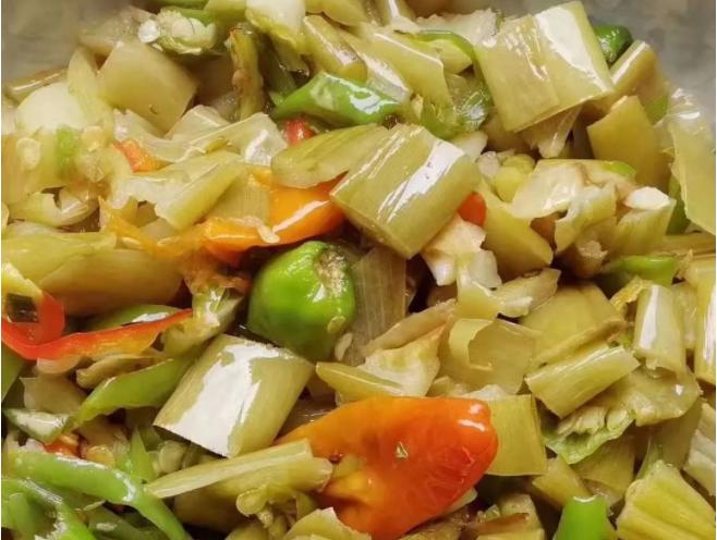 第一種就是撕皮后將芋梗切成1至3厘米,然后根據(jù)個人的喜好口味添加,蒜、辣椒等配料翻炒,這樣做出來的美食是很適合下飯。
